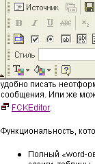 FCKEditor. Доступно подробное описание использования функциональности редактора.